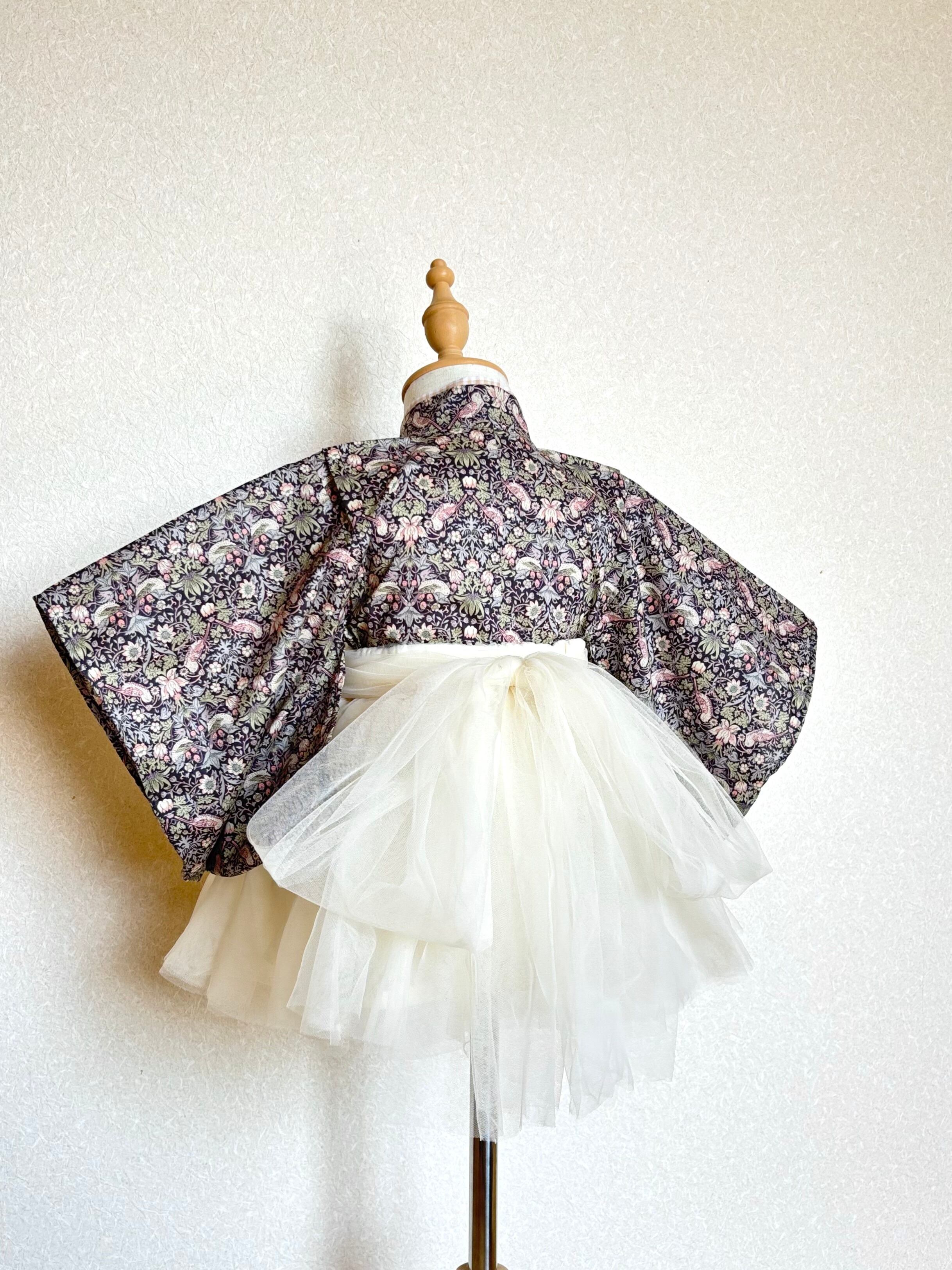 chiffon袴 strawberry thief khaki&pink × vanilla